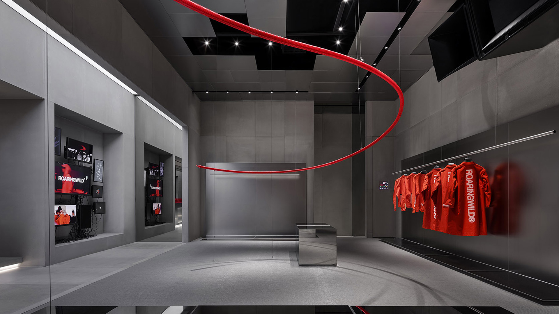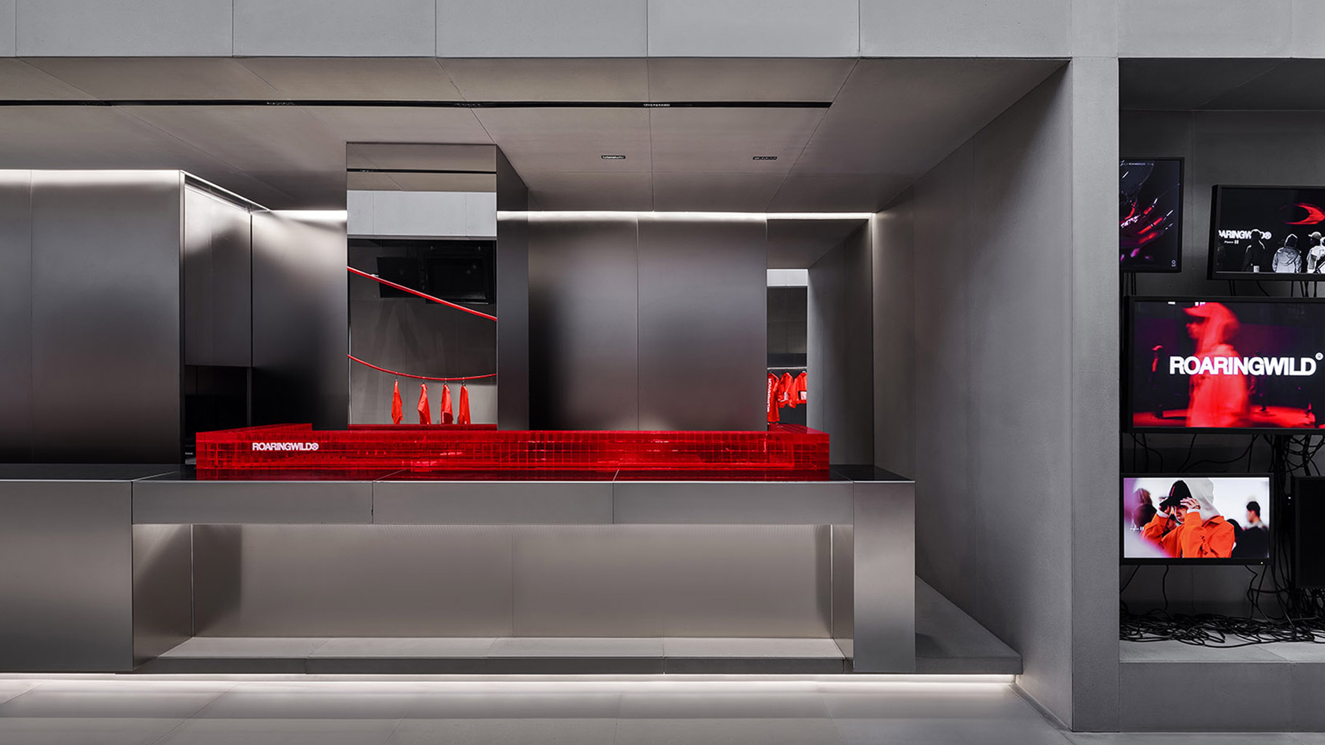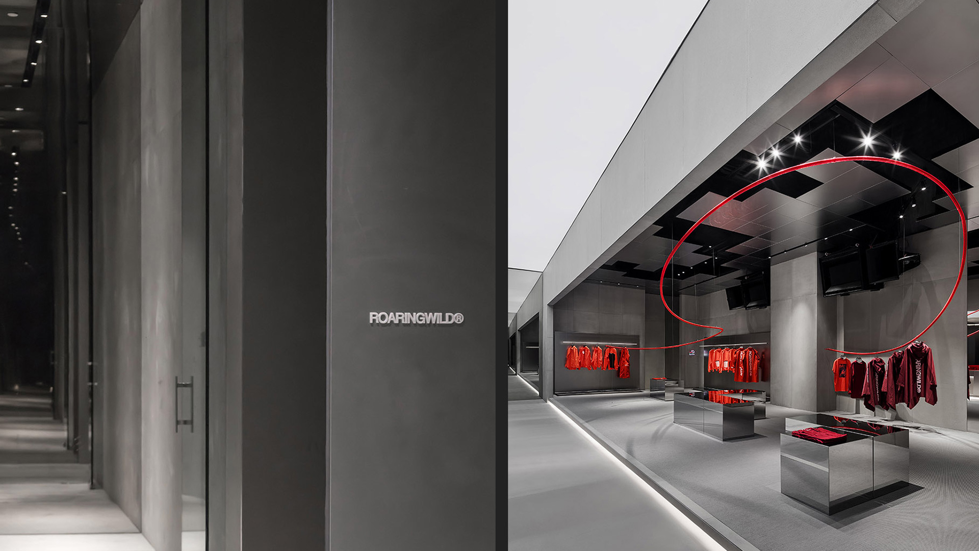 ROARINGWILD is a local clothing brand based in URBAN STREET style. The brand faces life through the attitude of “ROAR”, loves life, independent, and forms its own values. The brand hopes to convey the spirit of local street culture through clothing as a carrier and create a lifestyle and attitude that belongs to this generation. This project is the VIP offline store of the brand image store. Compared with the eye-catching retail store opened earlier, the flagship store is designed to reflect the brand’s intrinsic values. The project is located in Shenzhen Upper Hill complex, where the L3 floor outdoor is a European-style leisure street.