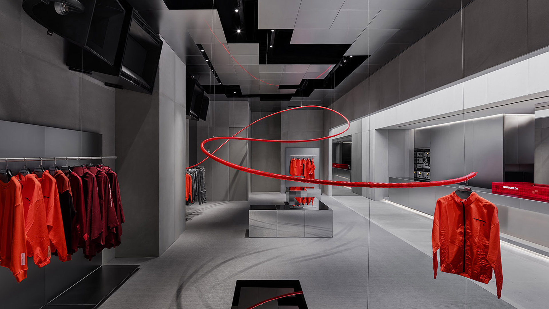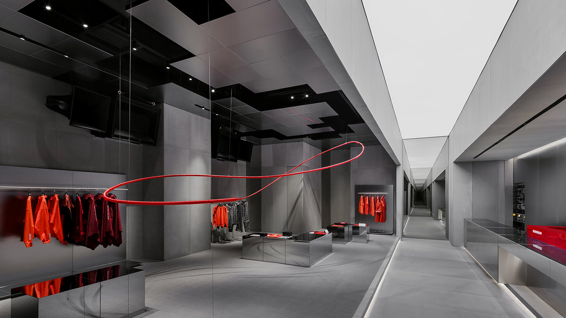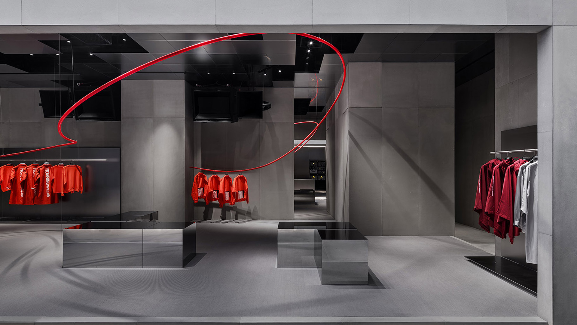 ROARINGWILD is a local clothing brand based in URBAN STREET style. The brand faces life through the attitude of “ROAR”, loves life, independent, and forms its own values. The brand hopes to convey the spirit of local street culture through clothing as a carrier and create a lifestyle and attitude that belongs to this generation. This project is the VIP offline store of the brand image store. Compared with the eye-catching retail store opened earlier, the flagship store is designed to reflect the brand’s intrinsic values. The project is located in Shenzhen Upper Hill complex, where the L3 floor outdoor is a European-style leisure street.
